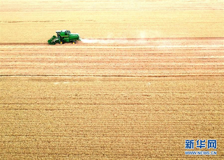 “三夏”時(shí)節(jié),中原大地一片金黃。位于河南省周口市的黃泛區(qū)農(nóng)場(chǎng)機(jī)聲隆隆,10萬(wàn)畝小麥?zhǔn)斋@正酣。