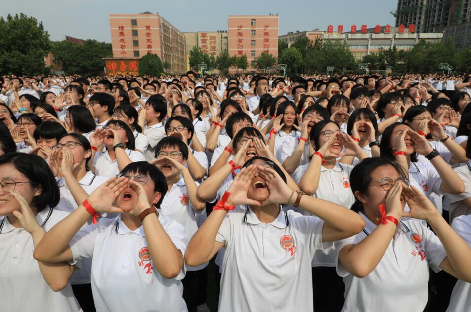 2020年6月6日,河北衡水二中舉行高考倒計(jì)時(shí)30天勵(lì)志動(dòng)員會(huì),通過向天空喊出夢(mèng)想的方式幫學(xué)生釋放壓力,振奮精神迎高考。