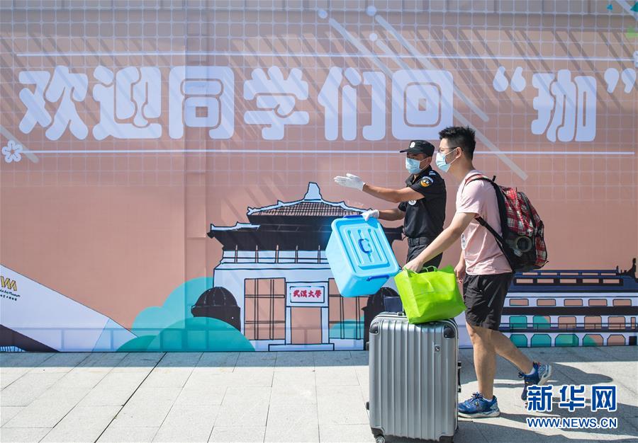 6月8日,在武漢大學(xué),返校學(xué)生步入校園。6月8日起,武漢大學(xué)、華中科技大學(xué)、武漢理工大學(xué)、華中師范大學(xué)等多所武漢高校迎來首批返校畢業(yè)生。新華社記者肖藝九攝