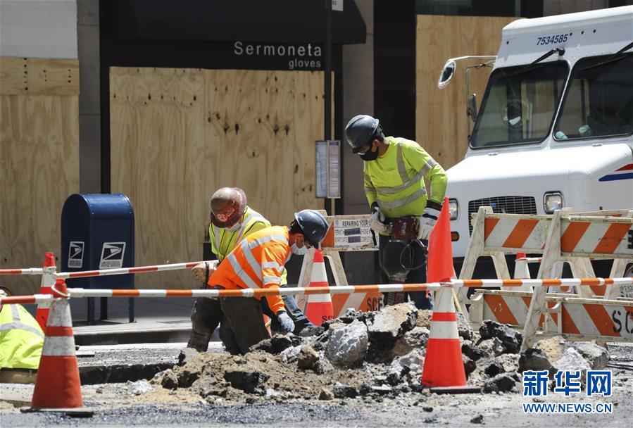 6月8日,工人在美國(guó)紐約的一處工地忙碌。在因新冠疫情進(jìn)入“居家令”近三個(gè)月之后,美國(guó)紐約市于當(dāng)?shù)貢r(shí)間8日開(kāi)始“解封”,進(jìn)入經(jīng)濟(jì)重啟的第一階段。新華社記者王迎攝