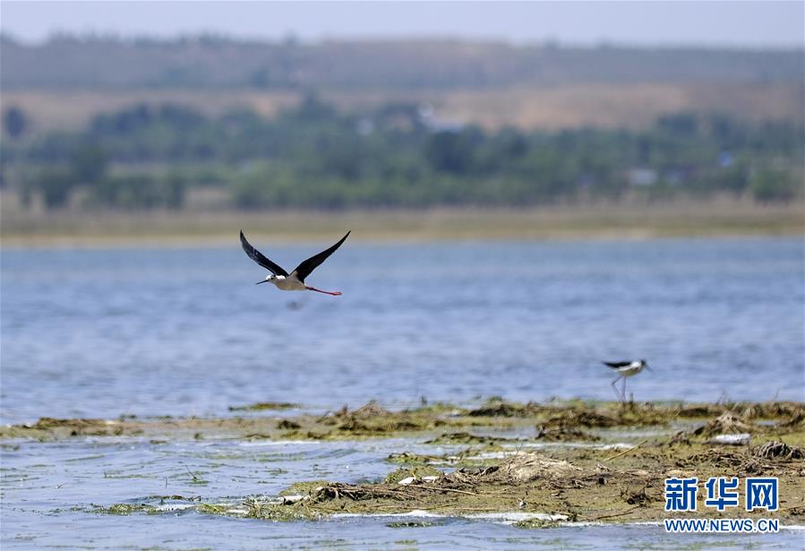 這是6月9日在泊江海子拍攝的黑翅長(zhǎng)腳鷸。近年來(lái),在當(dāng)?shù)卣亩喾N措施治理下,曾經(jīng)水面萎縮的內(nèi)蒙古自治區(qū)鄂爾多斯市境內(nèi)的泊江海子水量逐漸恢復(fù)。近期,包括遺鷗在內(nèi)的40多種鳥(niǎo)類來(lái)此棲息,泊江海子重新成為鳥(niǎo)類的樂(lè)園。新華社記者賈立君攝