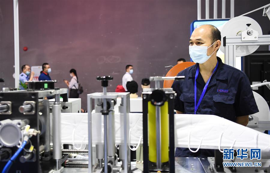 6月10日拍攝的展會(huì)上的一臺(tái)口罩生產(chǎn)設(shè)備。當(dāng)日,廣州國(guó)際防疫物資展覽會(huì)在保利世貿(mào)博覽館舉行。本次展會(huì)面積共計(jì)3.6萬(wàn)平方米,設(shè)有防疫產(chǎn)品、設(shè)備、綜合服務(wù)、原輔料等4個(gè)展區(qū),參展企業(yè)約600家。新華社記者鄧華攝