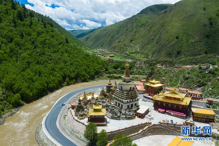 四川省阿壩藏族羌族自治州壤塘縣棒托石刻公園(6月13日攝,無(wú)人機(jī)照片)。新華社記者 沈伯韓 攝