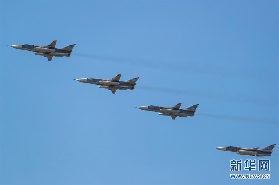 6月20日,在俄羅斯首都莫斯科,蘇-24M戰(zhàn)斗轟炸機(jī)編隊(duì)參加閱兵式彩排。俄羅斯將于6月24日舉行紀(jì)念衛(wèi)國戰(zhàn)爭(zhēng)勝利75周年閱兵式。新華社記者白雪騏攝