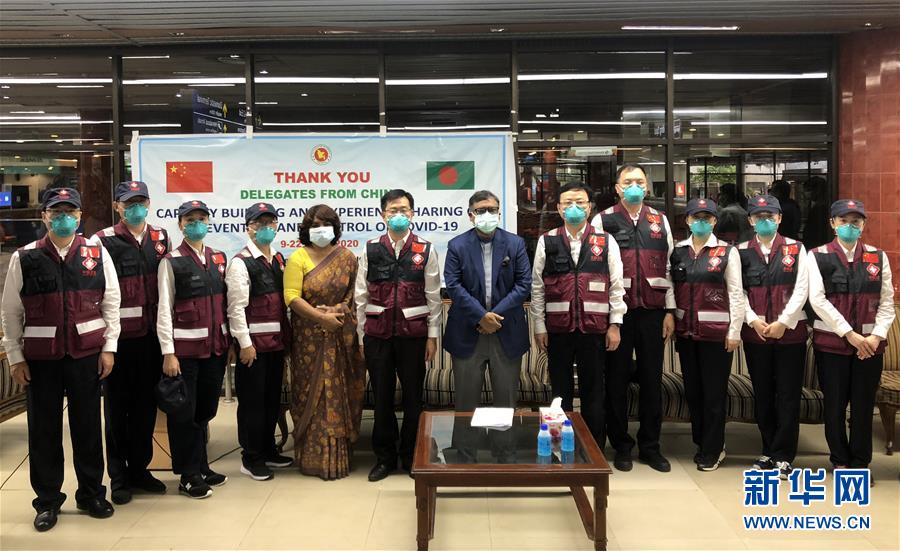 6月22日,孟加拉國(guó)衛(wèi)生和家庭福利部部長(zhǎng)馬利克(右六)等在首都達(dá)卡舉行的送行儀式上與中方專(zhuān)家組合影留念。中國(guó)赴孟加拉國(guó)抗疫醫(yī)療專(zhuān)家組圓滿(mǎn)完成任務(wù),于22日乘機(jī)返回祖國(guó)。孟加拉國(guó)衛(wèi)生和家庭福利部部長(zhǎng)馬利克對(duì)疫情發(fā)生以來(lái)中國(guó)給予孟加拉國(guó)的大力支持表示感謝。新華社記者劉春濤攝