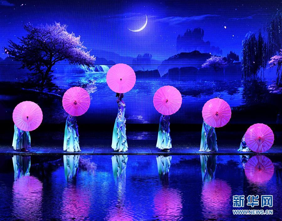 6月22日拍攝的《西安千古情》演出現(xiàn)場。大型舞臺劇《西安千古情》22日在西安浐灞世博園首演。該劇以一位華裔少女歸國尋根為故事主線,濃縮展現(xiàn)了古城西安的悠久歷史文化。新華社記者張博文攝