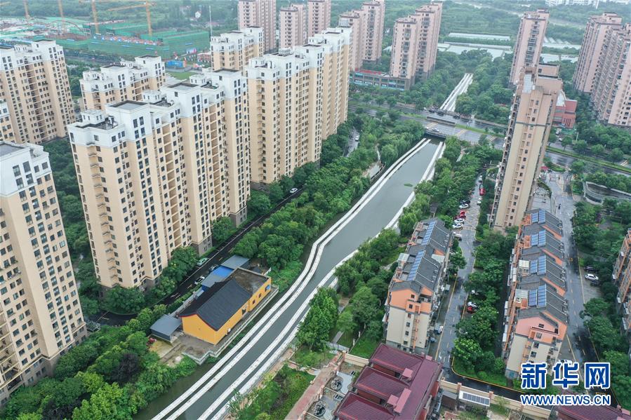 6月29日在吳興區(qū)湖東街道拍攝的“水上稻田”(無人機(jī)照片)。今年以來,浙江湖州吳興區(qū)湖東街道開始在轄區(qū)河道大規(guī)模推廣“水上稻田”新型農(nóng)業(yè)項(xiàng)目,利用浮島進(jìn)行特種水稻種植,既能凈化水體,又能產(chǎn)出生態(tài)稻谷?!八系咎铩鳖A(yù)計(jì)在11月實(shí)現(xiàn)收割。新華社記者翁忻旸攝