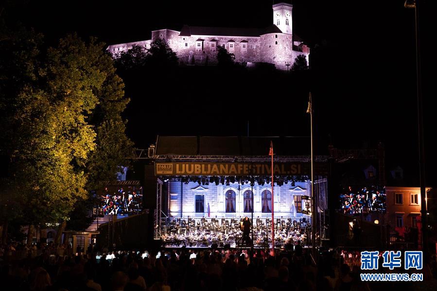 7月1日,樂手們?cè)谒孤逦哪醽喪锥急R布爾雅那舉行的藝術(shù)節(jié)開幕式上演出。當(dāng)日,第68屆盧布爾雅那藝術(shù)節(jié)拉開帷幕。新華社記者彭立軍攝