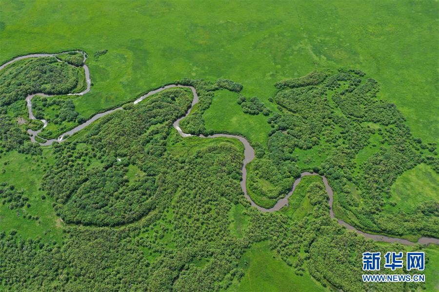 烏蘭毛都草原景色(7月2日無(wú)人機(jī)照片)。盛夏時(shí)節(jié),內(nèi)蒙古興安盟科爾沁右翼前旗的烏蘭毛都草原綠意盎然,風(fēng)景醉人。烏蘭毛都草原地處大興安嶺南麓,屬丘陵山地草原,風(fēng)光獨(dú)特。新華社記者徐欽攝