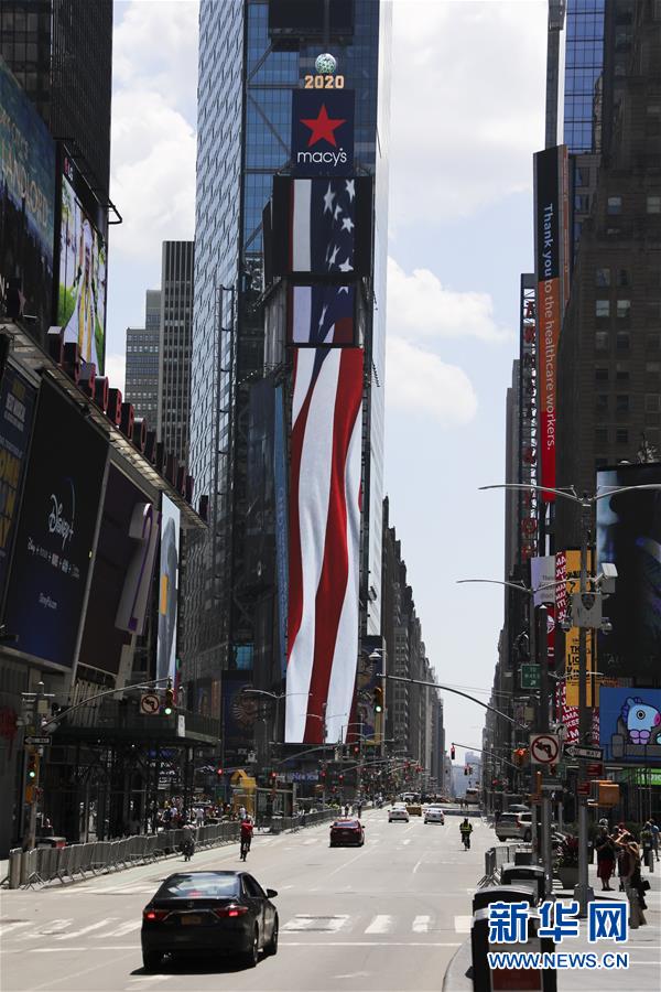 7月4日,美國紐約時報廣場上的行人和車輛稀少。當日是美國獨立日,美國多地疫情仍面臨嚴峻形勢。美國約翰斯·霍普金斯大學實時統(tǒng)計數(shù)據(jù)顯示,美國累計新冠確診病例4日已超過280萬例。新華社記者王迎攝
