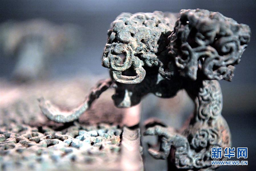 這是河南博物院展廳里云紋銅禁上的龍形附獸(2019年11月18日攝)。新華社記者李安攝