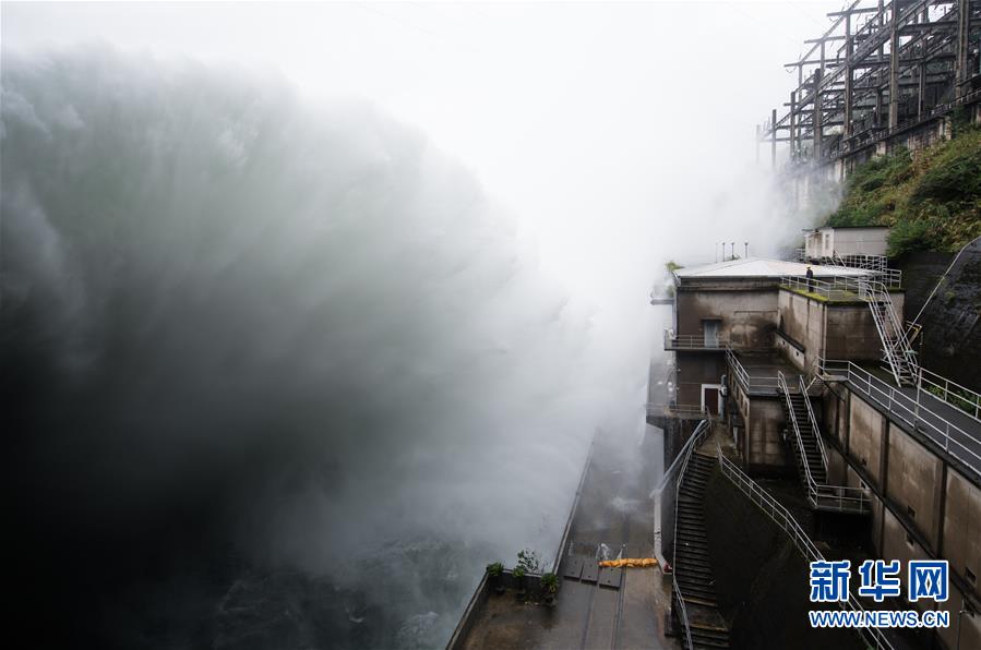 7月8日,新安江水庫(kù)開(kāi)啟9孔泄洪,新安江電廠工作人員在壩區(qū)巡視。新華社記者翁忻旸攝