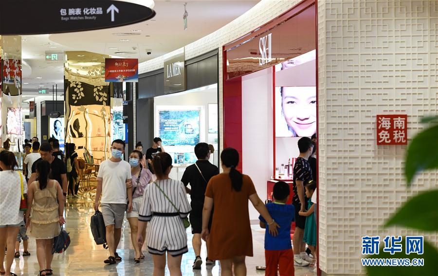7月12日,游客在海口日月廣場免稅店選購化妝品。新華社記者 楊冠宇 攝