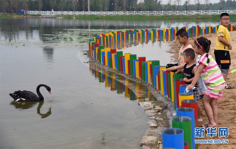 7月14日,小朋友在汶上縣白石鎮(zhèn)北泉村民俗旅游區(qū)玩耍。近年來,山東省汶上縣在鄉(xiāng)村振興過程中整治鄉(xiāng)村環(huán)境、發(fā)展生態(tài)產(chǎn)業(yè),建設(shè)美麗宜居的綠色鄉(xiāng)村。新華社記者 王凱 攝