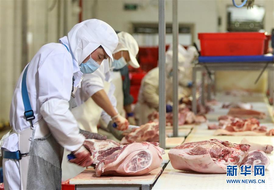 7月15日,北京二商肉類食品集團(tuán)有限公司員工在肉類分割流水線上工作。北京二商肉類食品集團(tuán)有限公司是保障北京肉類市場供應(yīng)的主要企業(yè)之一。新冠肺炎疫情以來,企業(yè)嚴(yán)格實(shí)施北京市、農(nóng)業(yè)農(nóng)村部和中國肉類協(xié)會的防疫要求,對進(jìn)入廠區(qū)的人員、車輛以及原料采購、屠宰分割、產(chǎn)品加工、貯藏運(yùn)輸、廢棄物收集及污水處理等生產(chǎn)環(huán)節(jié)嚴(yán)格防疫,強(qiáng)調(diào)源頭把關(guān)徹底消毒。目前,集團(tuán)公司下屬多家生豬屠宰加工基地正常運(yùn)營,保質(zhì)保量供應(yīng)北京市場需求。新華社記者 李欣 攝