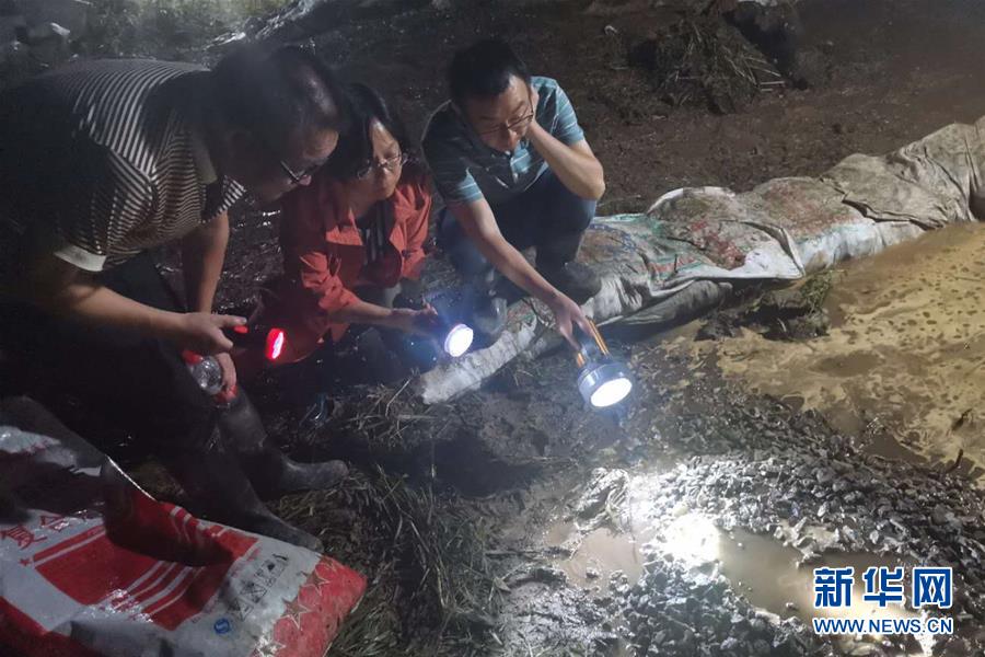7月13日晚,樅陽縣水利局高級工程師舒曉安(左一)在處置圩堤突發(fā)險情。受長江持續(xù)高水位影響,安徽省樅陽縣的鐵銅鄉(xiāng)江心洲已于近日將江心洲上的居民轉移安置,而包括搶險隊員、鄉(xiāng)鎮(zhèn)干部、水利工程師等在內的近300人“留守”在江心洲上巡堤查險,守護家園。鐵銅鄉(xiāng)位于長江江心洲上,有4個行政村52個村民組,耕地面積12000多畝。新華社發(fā)