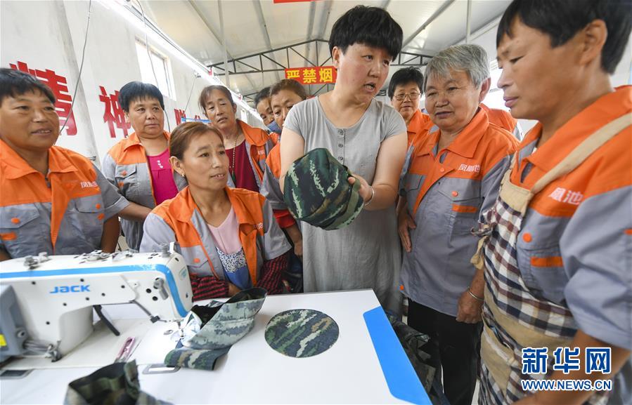 7月16日,在河北省深州市高古莊鎮(zhèn)鳳凰池村扶貧車間,馬京娜向車間工人講解技術(shù)要領(lǐng)。馬京娜是河北省深州市高古莊鎮(zhèn)鳳凰池村的致富能手。在市、鄉(xiāng)、村各級(jí)部門(mén)的大力支持下,馬京娜創(chuàng)辦扶貧車間,為建檔立卡貧困戶設(shè)立崗位,帶領(lǐng)貧困戶脫貧增收。目前,馬京娜的扶貧車間提供就業(yè)崗位30多個(gè)。新華社記者李曉果攝