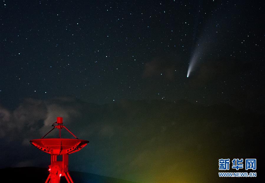 7月18日晚,在明安圖觀測基地,尼歐懷茲彗星劃過天際。7月18日晚至19日凌晨,在位于內(nèi)蒙古錫林郭勒盟正鑲白旗境內(nèi)的國家天文臺明安圖觀測基地,尼歐懷茲彗星劃過天際。在明安圖觀測基地內(nèi),排列著100面白色的拋物面天線。這個龐大的天線陣列便是草原“天眼”——明安圖射電頻譜日像儀。草原“天眼”持續(xù)接收太陽射電輻射,然后由科研人員進行數(shù)據(jù)分析研究,對空間環(huán)境監(jiān)測、太陽活動預(yù)報均有重要作用。新華社記者連振攝