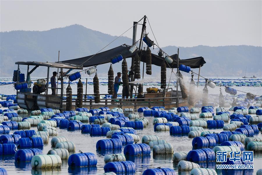 7月16日,在福建省霞浦縣長(zhǎng)春鎮(zhèn)海域,收獲生蠔的漁民在沖洗蠔籠。新華社記者姜克紅攝