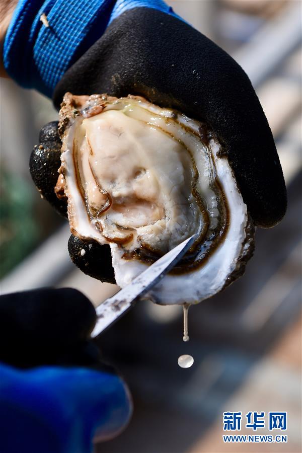 7月16日,福建省霞浦縣長(zhǎng)春鎮(zhèn)秋竹崗村養(yǎng)殖大戶俞開明展示一粒成熟的三倍體生蠔。新華社記者姜克紅攝