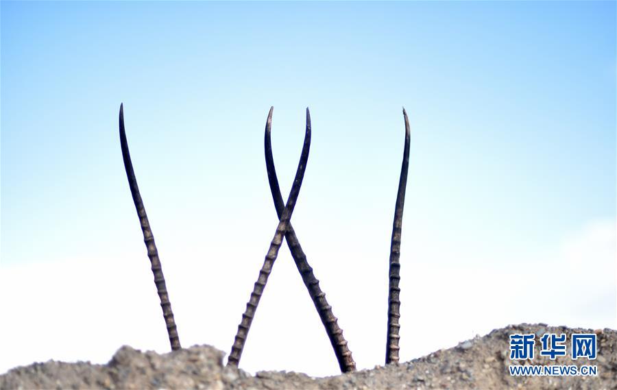 7月17日在西藏尼瑪縣榮瑪鄉(xiāng)附近拍攝的藏羚羊公羊的角。2000年,西藏羌塘自然保護區(qū)晉升為國家級自然保護區(qū)。20年來,經過西藏各級各部門的不懈努力,羌塘國家級自然保護區(qū)內的重點保護野生動物種群數量明顯增加,其中,藏羚羊種群數量由原來的5至7萬只,恢復到目前的15萬只以上。羌塘國家級自然保護區(qū)核心地帶的西藏尼瑪縣榮瑪鄉(xiāng)附近,目前就有近6萬只藏羚羊。新華社記者覺果攝
