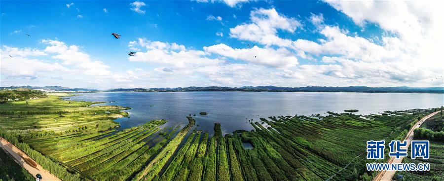 草海夏日風光(6月10日攝無人機照片)。新華社記者楊文斌攝