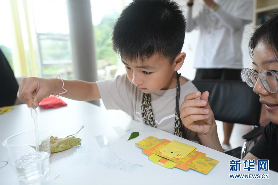 7月27日,小朋友在制作植物標本。