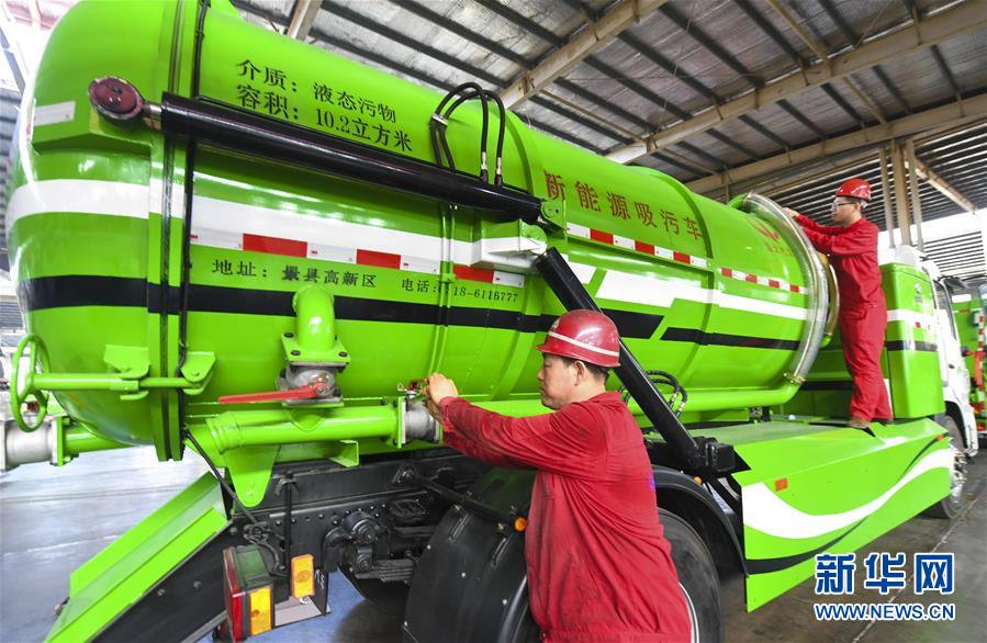 7月27日,河北景縣開發(fā)區(qū)一家新能源汽車制造公司工人對新能源吸污車進行調試。新華社記者 李曉果 攝