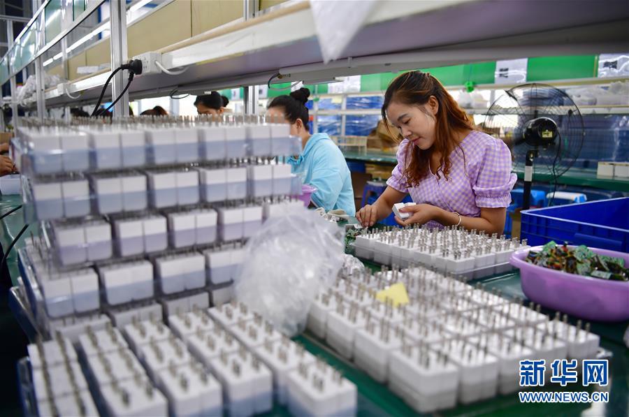 7月25日,在陜西漢陰縣澗池鎮(zhèn)紫云南郡易地扶貧搬遷安置社區(qū)的社區(qū)工廠內(nèi),社區(qū)居民在加工插頭。陜南地區(qū)地處秦巴山區(qū),是陜西脫貧攻堅(jiān)的主戰(zhàn)場(chǎng)。近年來(lái),陜南各縣區(qū)因地制宜、精準(zhǔn)施策,通過(guò)發(fā)展社區(qū)工廠、特色種植、旅游扶貧、技能培訓(xùn)、電商帶貨等措施,促進(jìn)多種產(chǎn)業(yè)發(fā)展,助力農(nóng)民增收。新華社記者邵瑞攝