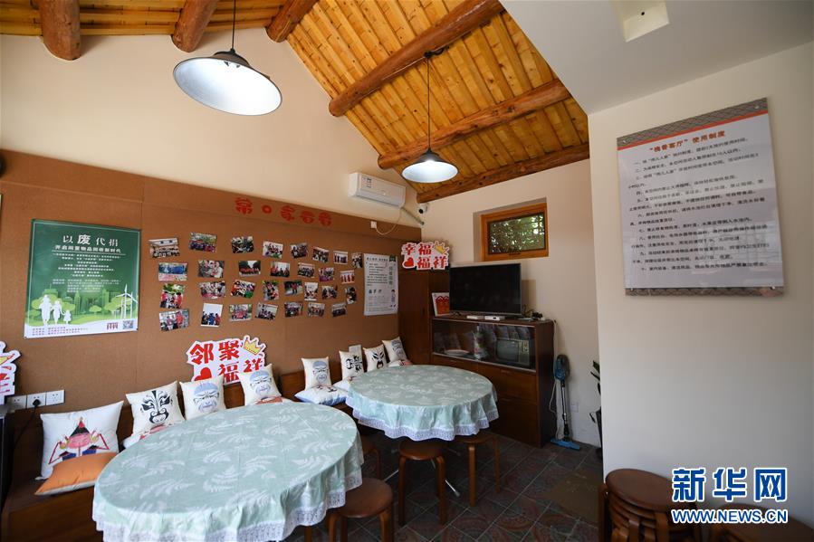 北京市東城區(qū)雨兒胡同30號(hào)院內(nèi),騰退后的房子改造成的“槐香客廳”,成為居民議事、活動(dòng)的公共空間(5月13日攝)。新華社記者鞠煥宗攝