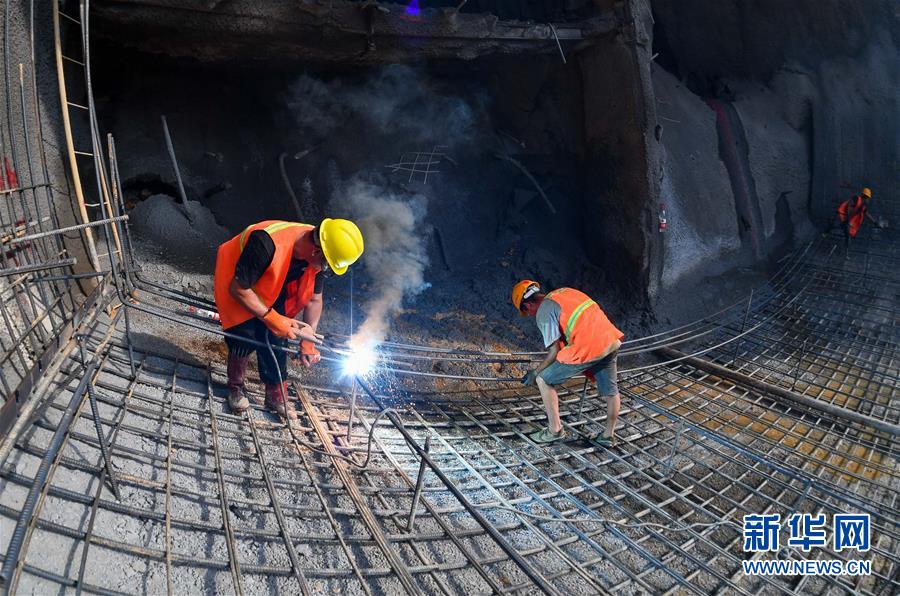 7月30日,中鐵四局施工人員在潮州東聯(lián)絡(luò)線(xiàn)馬頭山隧道進(jìn)行仰拱鋼筋焊接。新華社記者劉大偉攝