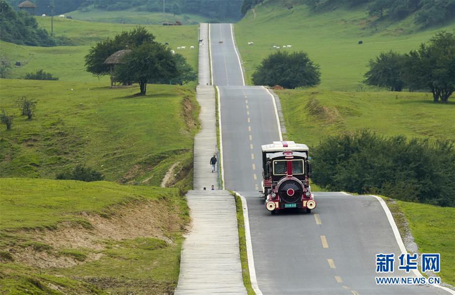 7月30日,小火車載著游客行駛在仙女山國家森林公園。