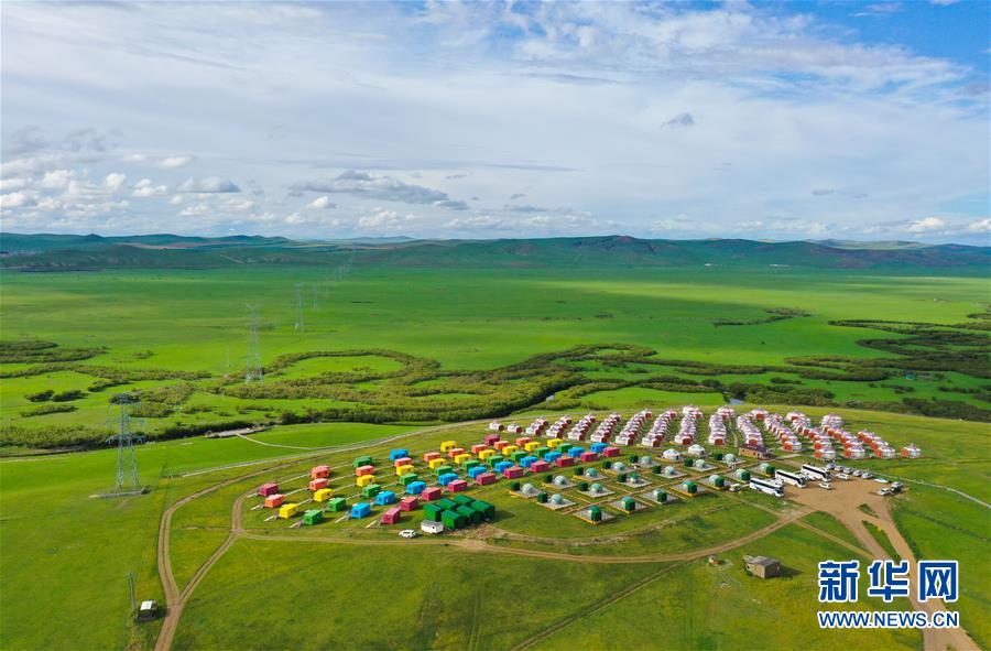 這是呼倫貝爾陳巴爾虎旗天下草原游牧部落一景(8月3日攝,無人機(jī)照片)。今年暑期,內(nèi)蒙古呼倫貝爾通過暫行周末2.5天彈性休假工作制度,發(fā)放旅游、餐飲消費(fèi)券,景區(qū)推出優(yōu)惠促銷活動(dòng)等措施,提振當(dāng)?shù)芈糜问袌觥P氯A社記者徐欽攝