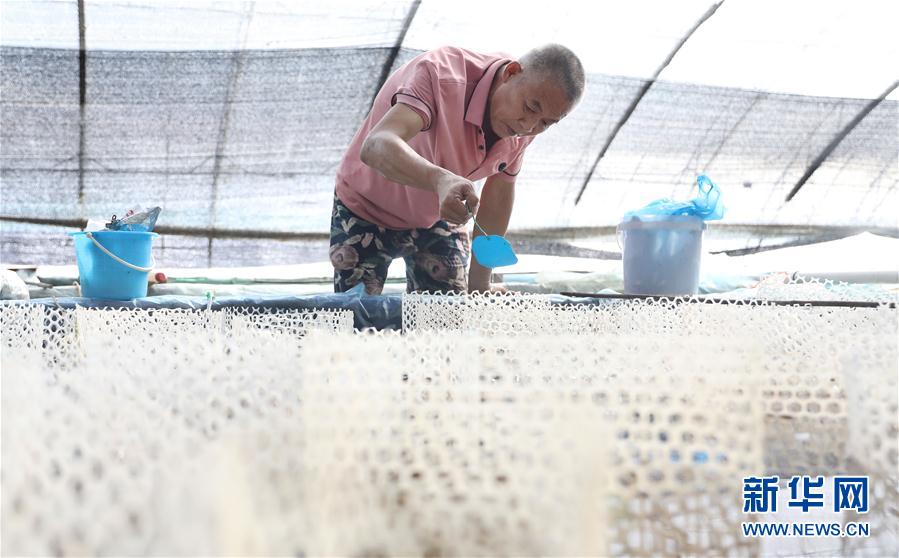 這是張忠堡村村民李國(guó)鵬養(yǎng)殖池里的觀賞魚(yú)育種筐(8月4日攝)。新華社記者姚劍鋒攝