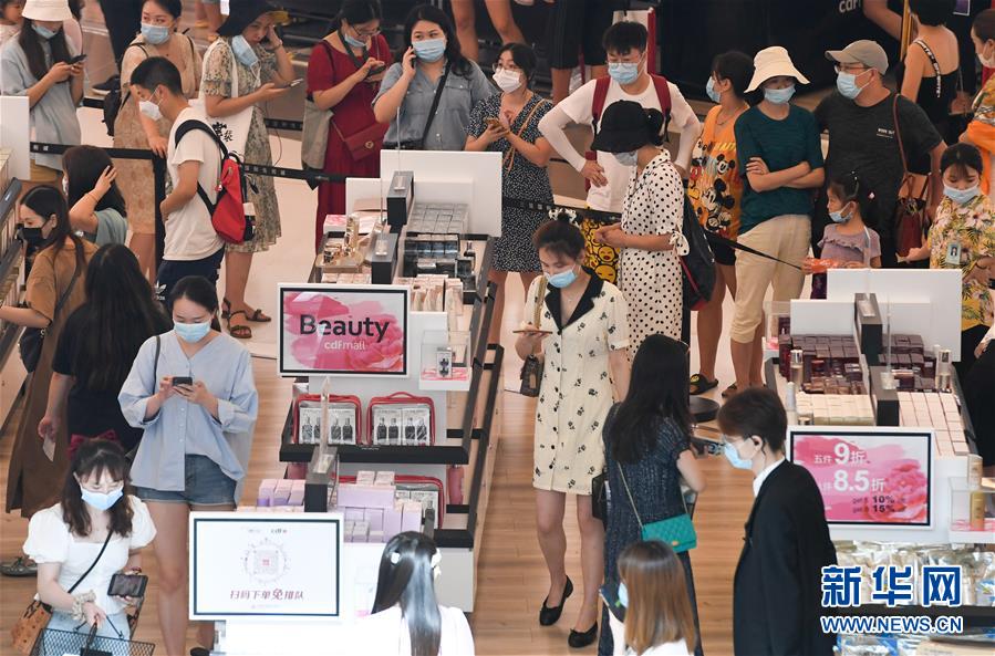 8月6日,游客在三亞國(guó)際免稅城排隊(duì)進(jìn)店。新華社記者楊冠宇攝