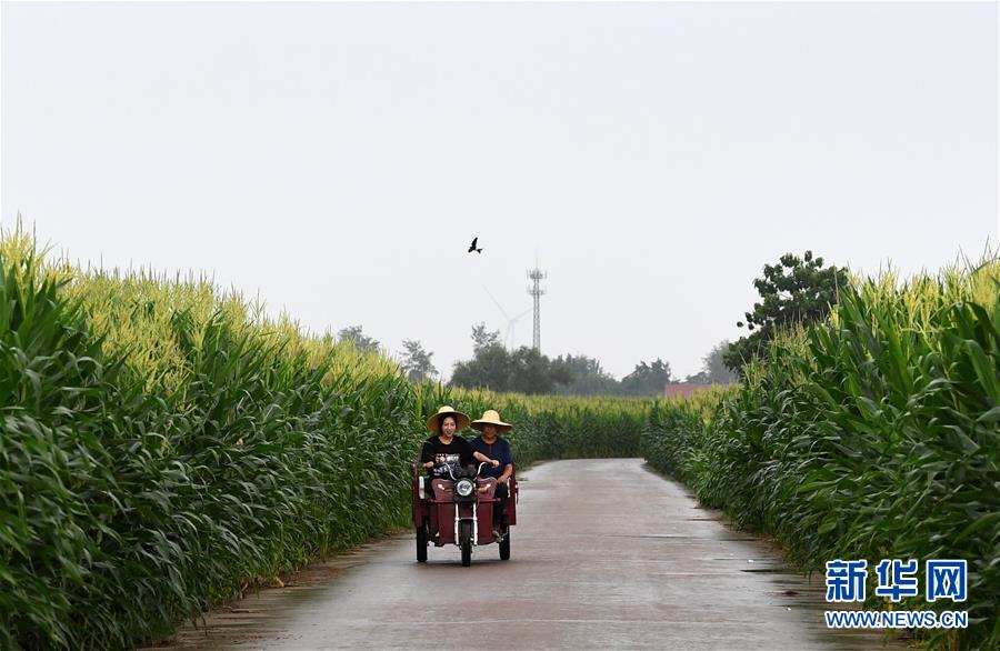 8月5日,王曉楠與父親在自家庭院內(nèi)勞作(無(wú)人機(jī)照片)。新華社記者郝源攝