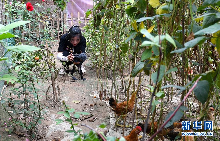 8月4日,王曉楠在家中拍攝短視頻。新華社記者郝源攝