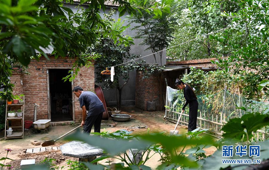 8月4日,王曉楠(右)與父親在修理下水道。新華社記者郝源攝