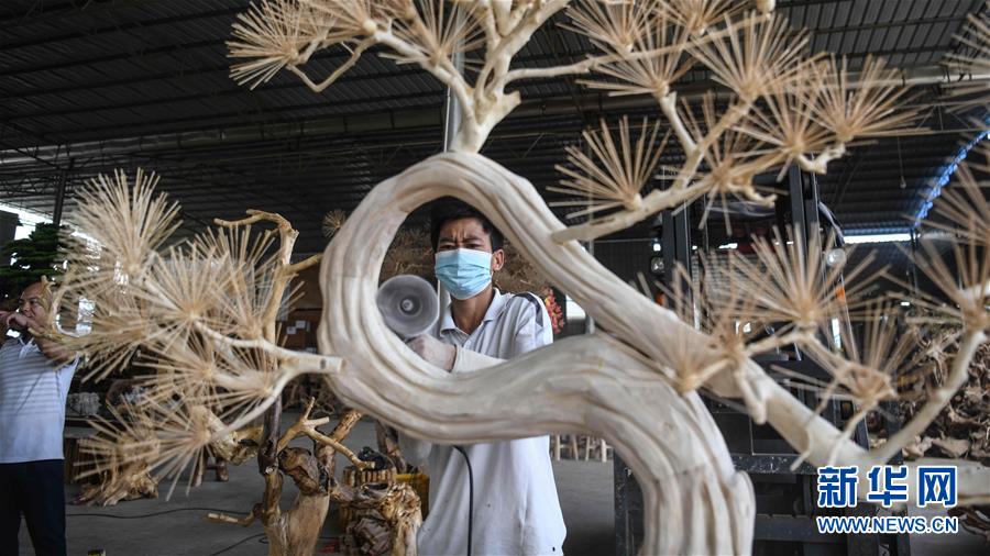 8月7日,工人在制作根雕工藝品。2017年以來,廣西桂林市永??h永安鄉(xiāng)通過幫扶返鄉(xiāng)青年創(chuàng)業(yè)的方式,建立起根雕工藝品就業(yè)扶貧車間,組織貧困群眾進(jìn)車間務(wù)工學(xué)藝,把當(dāng)?shù)刎S富的朽木和柑橘樹根枝資源利用起來,加工成盆景、茶桌、吊燈等根雕工藝品,不僅幫助貧困群眾在家門口掌握一技之長,還讓他們在脫貧摘帽后實(shí)現(xiàn)穩(wěn)定增收。新華社記者張愛林?jǐn)z