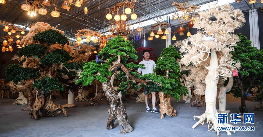 這是8月7日在永??h永安鄉(xiāng)根雕工藝品就業(yè)扶貧車間拍攝的根雕工藝品。2017年以來,廣西桂林市永??h永安鄉(xiāng)通過幫扶返鄉(xiāng)青年創(chuàng)業(yè)的方式,建立起根雕工藝品就業(yè)扶貧車間,組織貧困群眾進(jìn)車間務(wù)工學(xué)藝,把當(dāng)?shù)刎S富的朽木和柑橘樹根枝資源利用起來,加工成盆景、茶桌、吊燈等根雕工藝品,不僅幫助貧困群眾在家門口掌握一技之長,還讓他們在脫貧摘帽后實(shí)現(xiàn)穩(wěn)定增收。新華社記者張愛林?jǐn)z