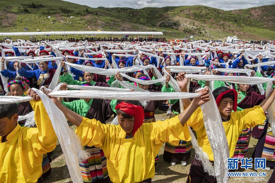 8月7日,在西藏首屆弦子舞展演現(xiàn)場,演出人員在表演弦子舞。當日,西藏首屆弦子舞展演在昌都市芒康縣舉行。眾多演員同臺獻藝,表演國家級非物質(zhì)文化遺產(chǎn)弦子舞,吸引西藏各地的群眾前來觀看。新華社記者孫非攝