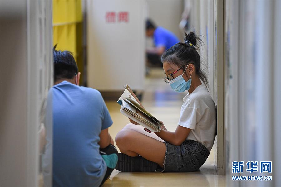 8月8日,小朋友在位于??诘暮D鲜D書(shū)館閱讀書(shū)籍。新華社記者 蒲曉旭 攝