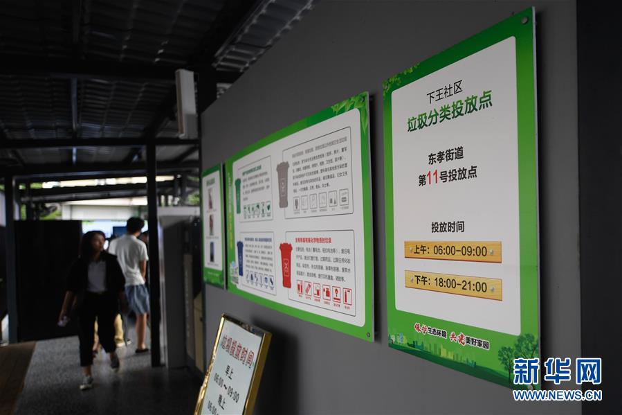 在金華市金東區(qū)東孝街道一社區(qū)拍攝的垃圾分類投放點(diǎn)(7月16日攝)。近年來,浙江省通過創(chuàng)新宣傳教育,多措并舉促進(jìn)垃圾分類投放、收運(yùn)及處置的良性循環(huán),引領(lǐng)垃圾分類成為城鄉(xiāng)居民的生活新風(fēng)尚。新華社記者黃宗治攝。
