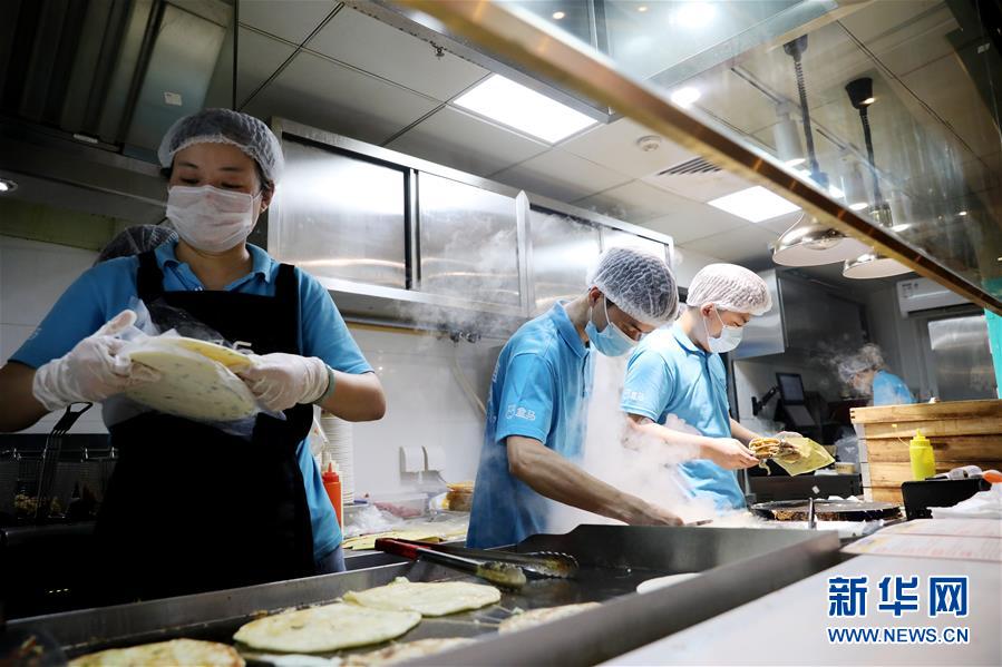 在上海地鐵13號線世博會博物館地鐵站附近的一家盒小馬服務點,工作人員在制作煎餅果子等早餐餐品(7月17日攝)。近年來,在上海崛起了一批以盒馬、叮咚、拼多多為代表的在線經(jīng)濟新力量,在助力脫貧攻堅、提升城市居民品質(zhì)生活方面發(fā)揮著重要作用。電商加持下的“云農(nóng)業(yè)”加速發(fā)展,一端為市民提供更便宜新鮮的農(nóng)產(chǎn)品,另一端讓山區(qū)的優(yōu)質(zhì)產(chǎn)品加速進入城市餐桌,化解交通不便、農(nóng)產(chǎn)品滯銷等問題。新華社記者方喆攝。