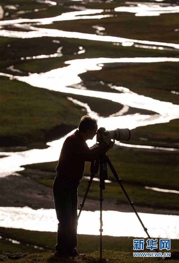 一名來(lái)自成都的攝影師在拍攝泥拉壩濕地(8月9日攝)。新華社記者江宏景攝。