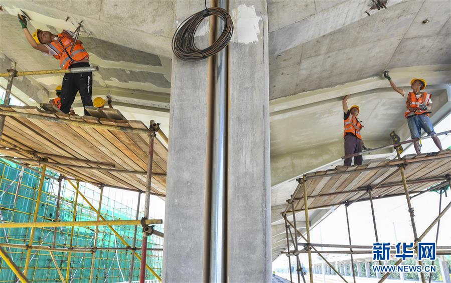 8月10日,工人在京雄城際鐵路霸州北站建設(shè)工地為雨棚梁底抹膩?zhàn)印>┬鄢请H鐵路霸州北站站臺雨棚混凝土結(jié)構(gòu)施工日前全部完成,目前霸州北站已全面轉(zhuǎn)入裝飾裝修和機(jī)電安裝階段,預(yù)計(jì)2020年底投入使用。京雄城際鐵路是連接北京市區(qū)、大興機(jī)場和雄安新區(qū)的重要干線。建成后,將進(jìn)一步完善京津冀區(qū)域高速鐵路網(wǎng)結(jié)構(gòu),便利沿線群眾出行,對于推動京津冀協(xié)同發(fā)展和支撐建設(shè)雄安新區(qū)具有重要意義。新華社記者李曉果攝。
