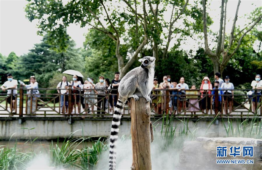 8月11日,上海動(dòng)物園的環(huán)尾狐猴在“地噴”營(yíng)造的水霧中玩耍。當(dāng)日,上海最高溫度達(dá)到35攝氏度,上海動(dòng)物園開(kāi)啟園內(nèi)安裝的各種噴淋裝置,讓動(dòng)物們防暑降溫,樂(lè)享清涼。新華社記者張建松攝