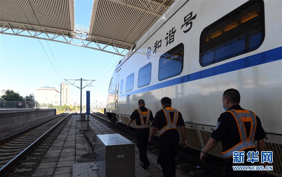 8月12日,長(zhǎng)春火車站客運(yùn)車間上水工韓冰等候列車停站。新華社記者 林宏 攝