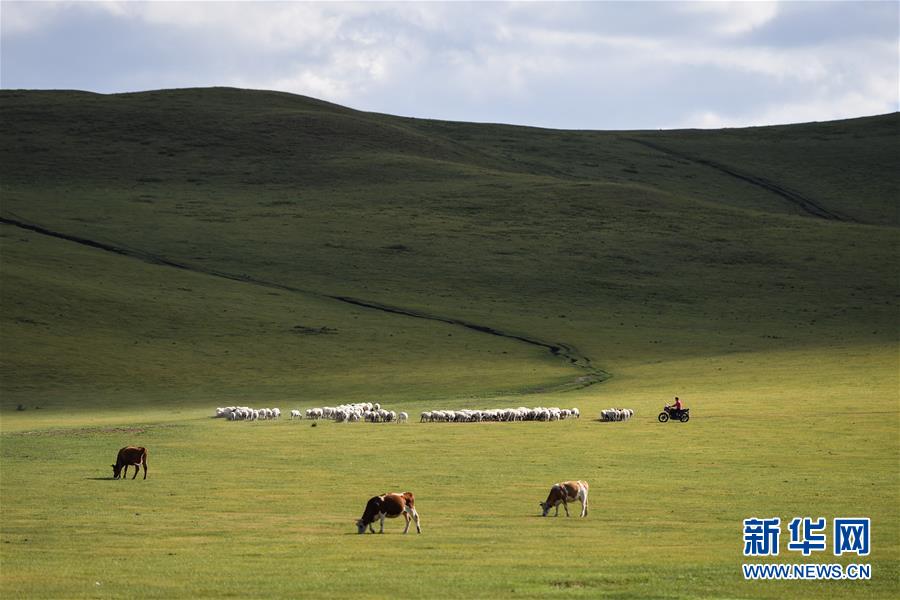 牧民在克什克騰旗貢格爾草原放牧(8月11日攝)。克什克騰旗位于內蒙古自治區(qū)赤峰市西北部,境內的湖泊、河流、草原、森林等自然景觀,讓人們流連忘返。新華社記者劉磊攝