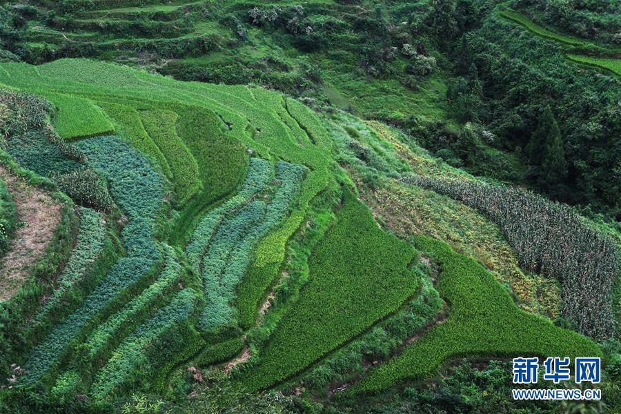 這是8月13日拍攝的鞍子鎮(zhèn)大林村梯田景色。時下,重慶市彭水苗族土家族自治縣鞍子鎮(zhèn)大林村的梯田景色迷人,構(gòu)成一幅幅山鄉(xiāng)田園美景。新華社記者王全超攝